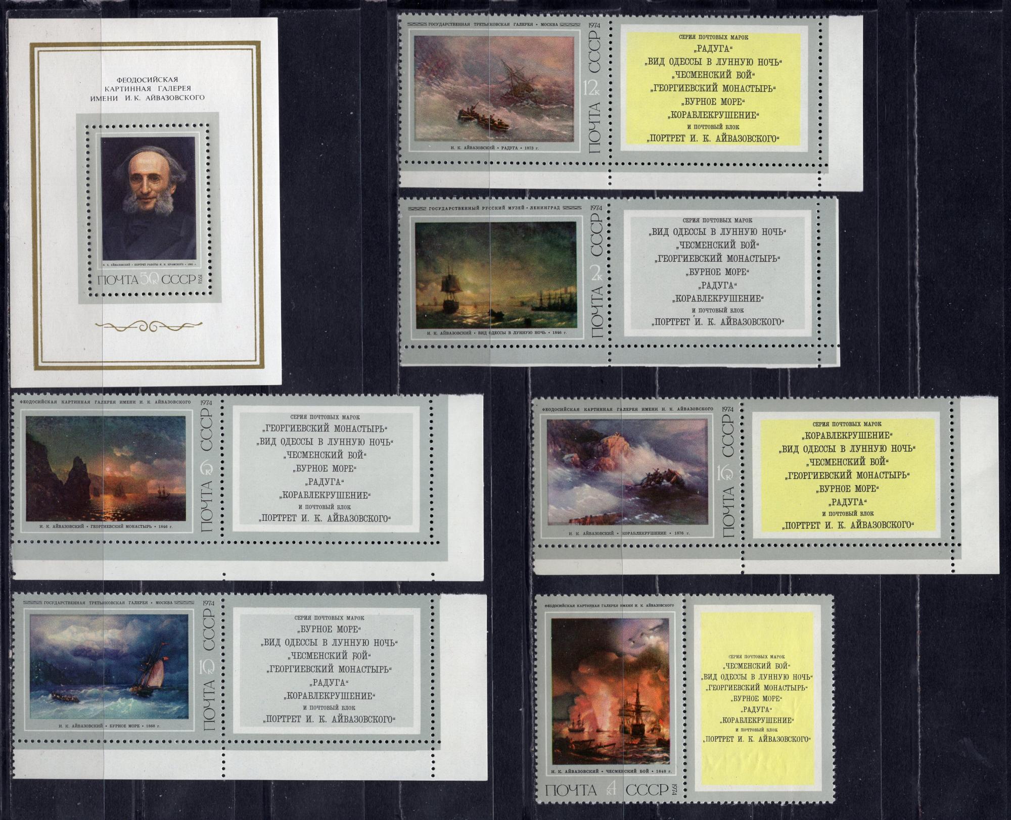 Почтовые марки. СССР. 1974г. Айвазовский. Марки с купонами. №4330-4336.