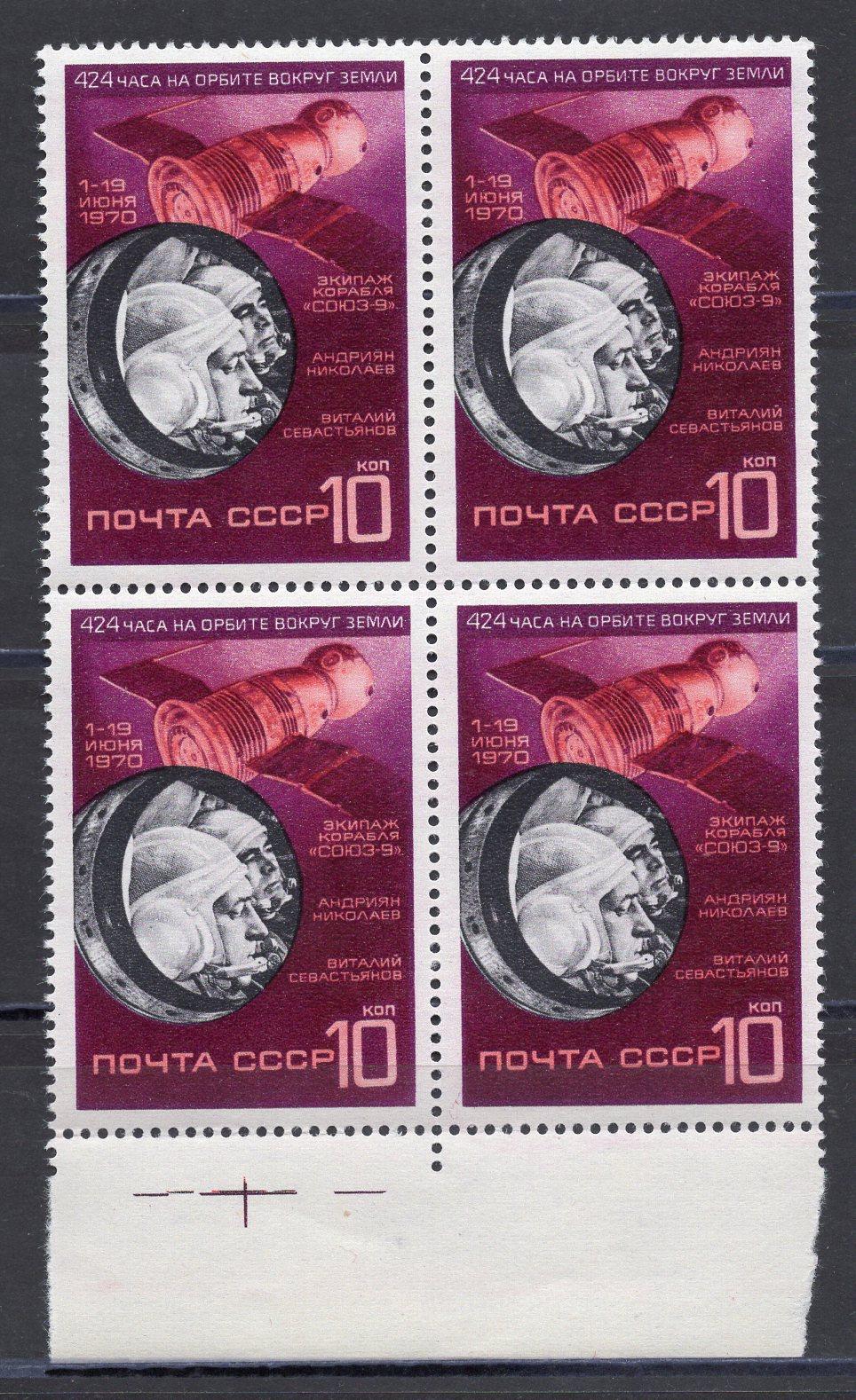 Почтовые марки. СССР. 1970г. Космос. Союз-9. Блок №3907. КБ.