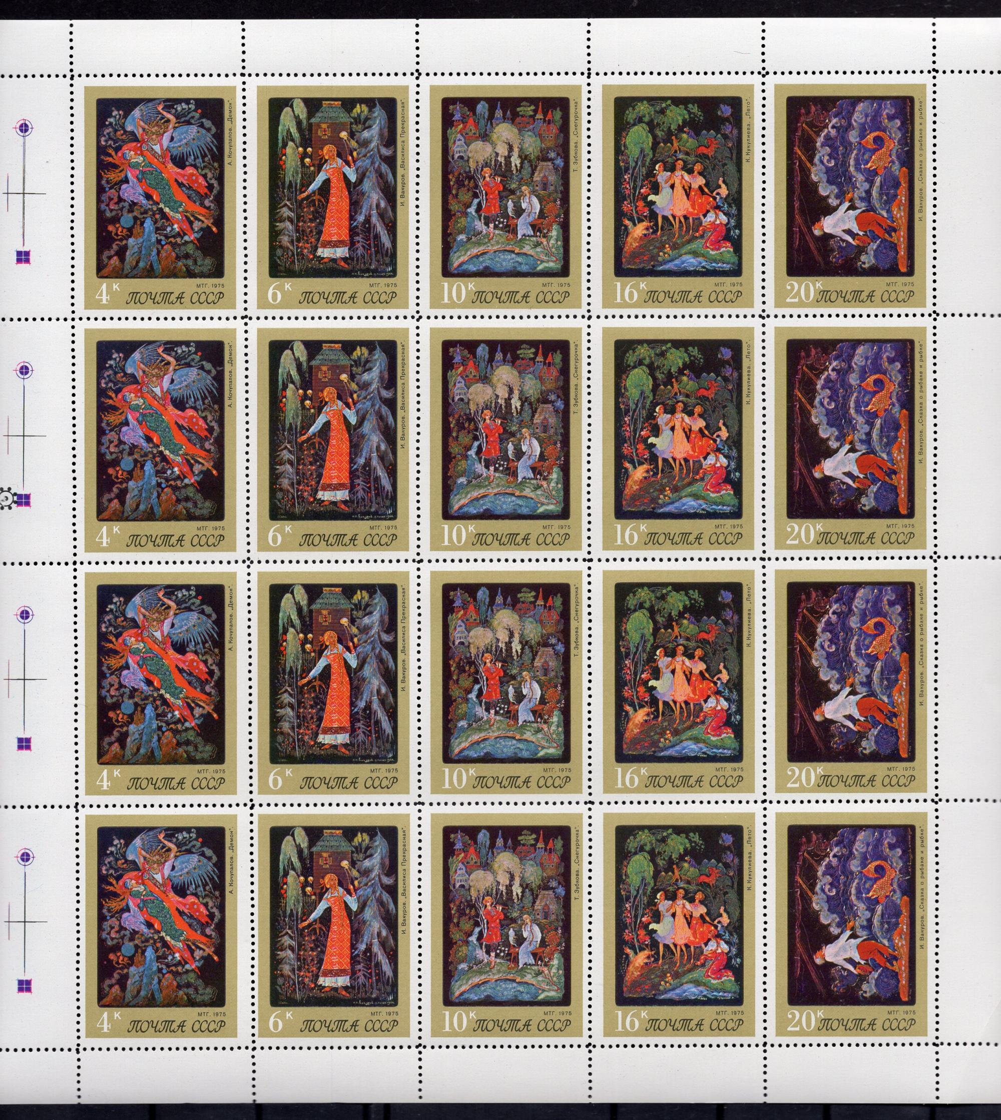 Почтовые марки. СССР. 1975г. Палех. №4536-4540. Лист.