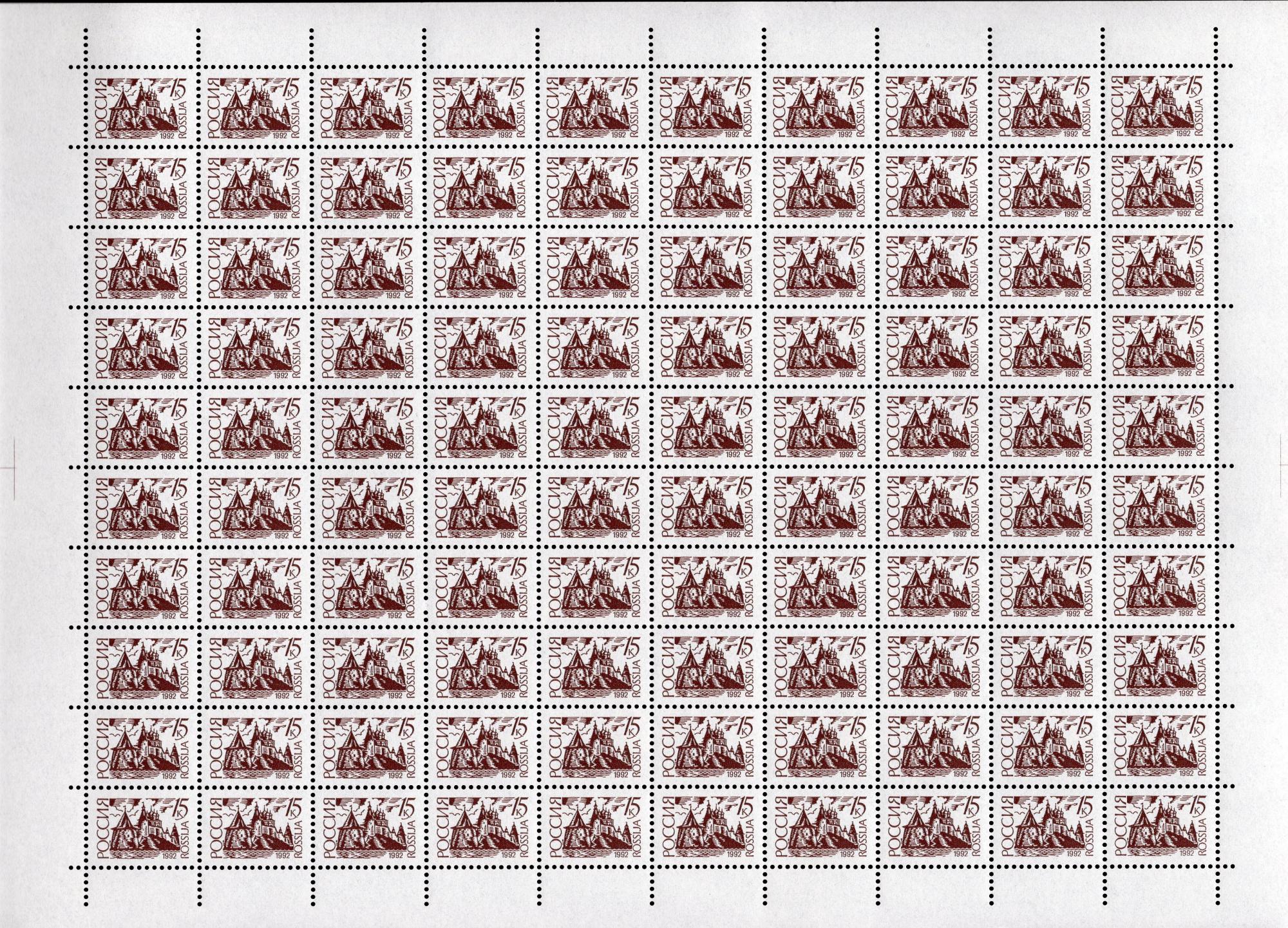 Почтовые марки. Россия. 1992г. Стандарт. Простая бумага. №29(47-I) Лист. (Кат. С-К: 2000р.)
