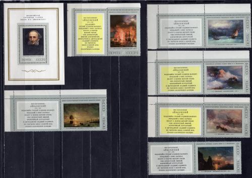 Почтовые марки. СССР. 1974г. Айвазовский. Марки с купонами. №4330-4336.