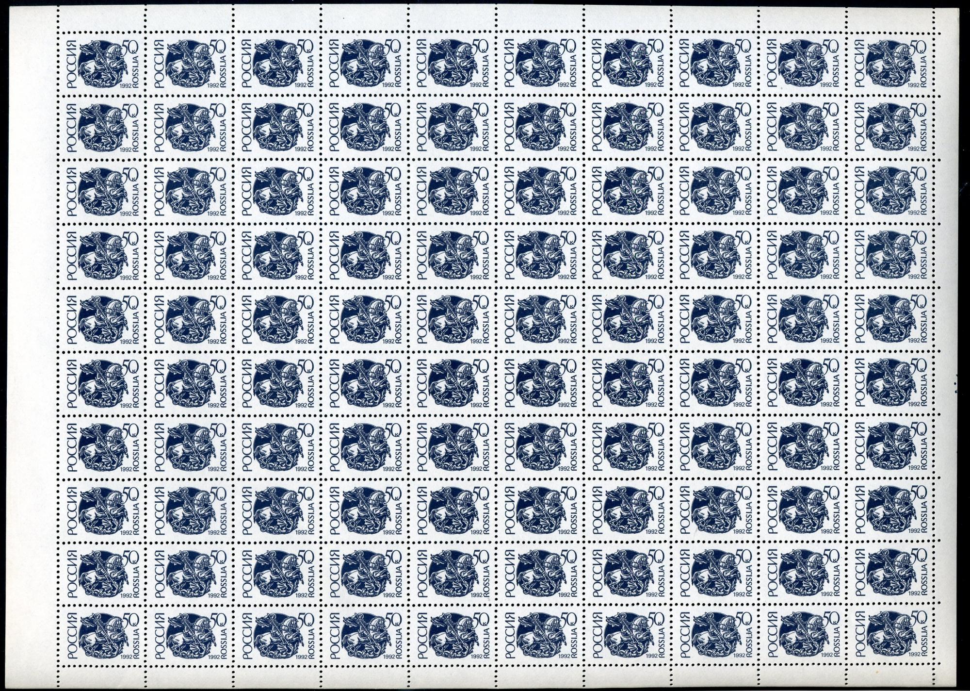 Почтовые марки. Россия 1992г. Стандарт. Простая бумага. №31(42-I) Лист. (Кат. С-К: 6000р.)