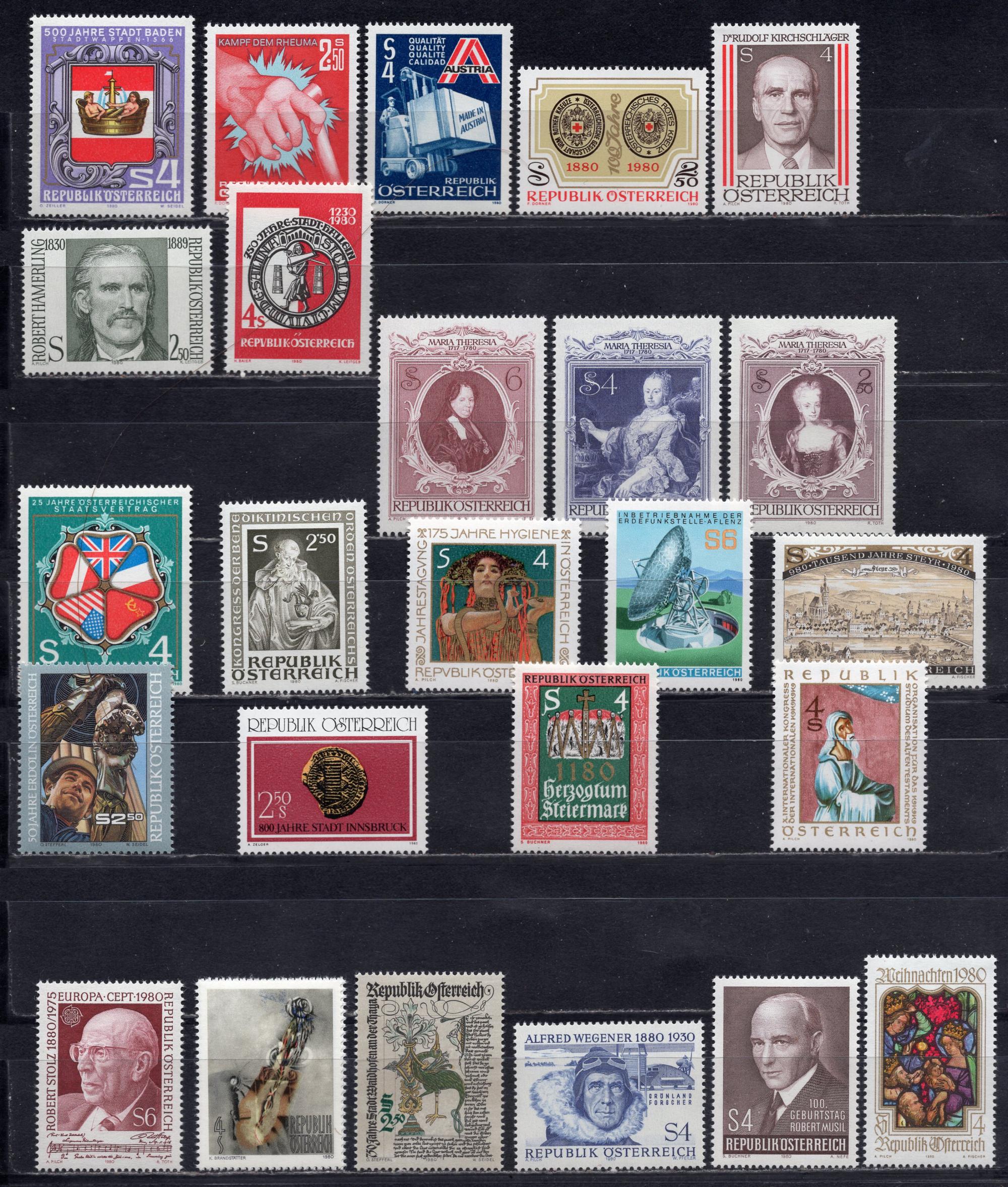 Почтовые марки. Австрия, 1980 г. №1631-1663. Космос. Антарктика. Мария-Тереза и т.д.