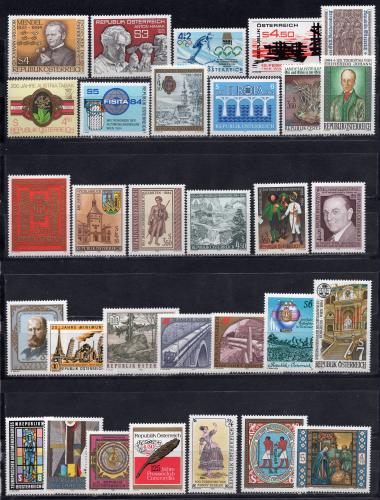 Почтовые марки. Австрия, 1984 г. №1763-1798. Ол. Игры. Европа. Искусство. Локомотивы. Сб. лот
