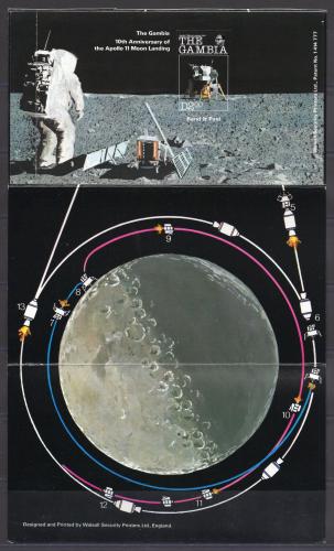 Почтовые марки. Гамбия. 1979г. Космос. 10-летие высадки на Луну. Самоклейка. Люкс-блок. №401в.