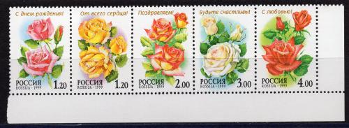 Почтовые марки. Россия. 1999г. Розы. №513-517. Сцепка.