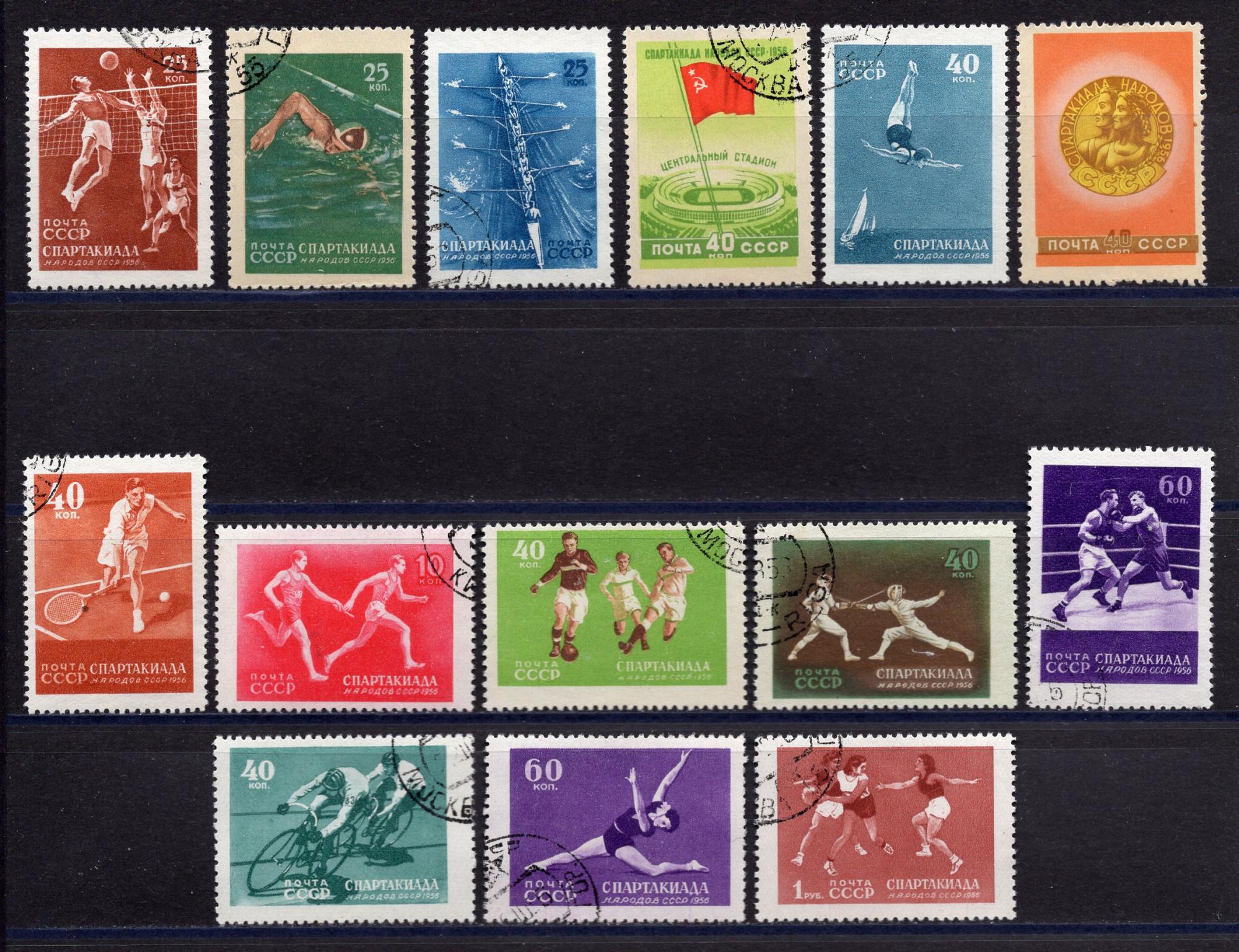 Почтовые марки. СССР. 1956г. Спартакиада народов СССР. Свой клей ! №1910-1923.