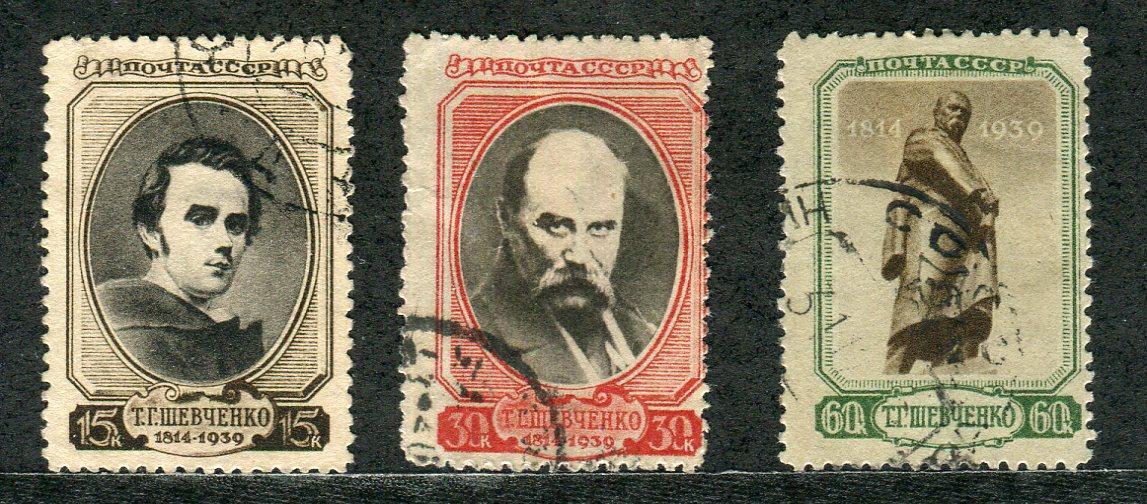 Почтовые марки. СССР 1939 г. Шевченко. № 673 - 675.