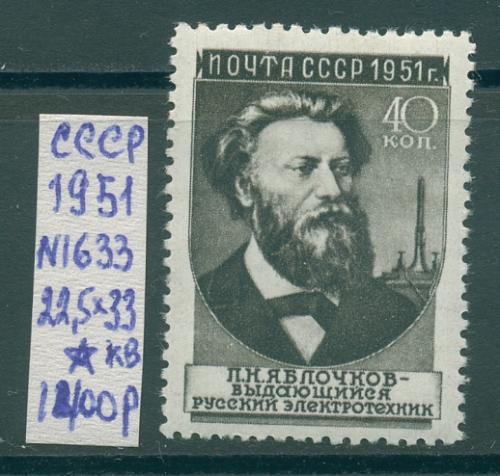 Почтовые марки. СССР. 1951г. Яблочков. №1633. Тип I (Кат. 1200р.)