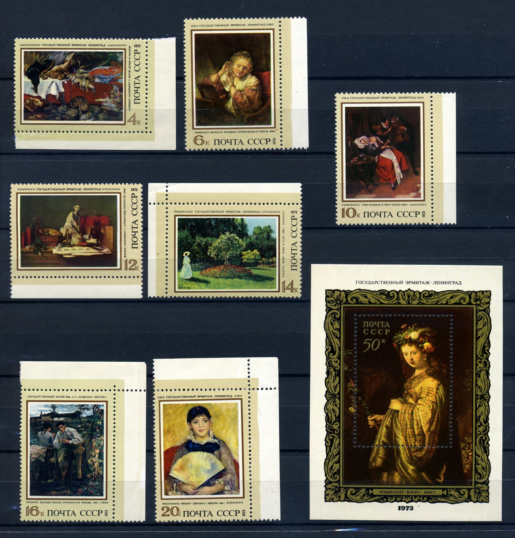 Почтовые марки. СССР. 1973г. Эрмитаж. Зарубежная живопись. №4300-4306. Блок №4307. (кат.: 200р.)