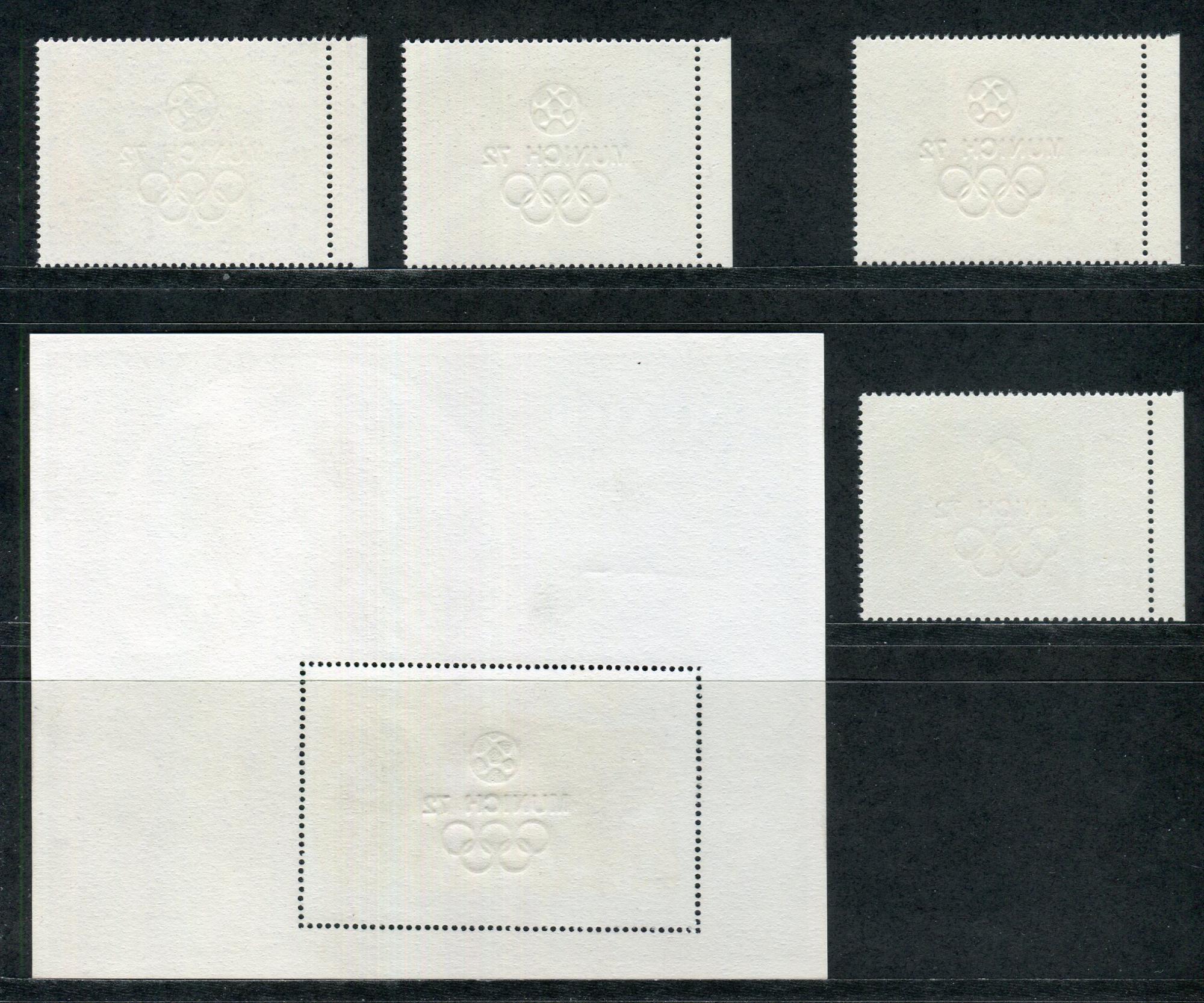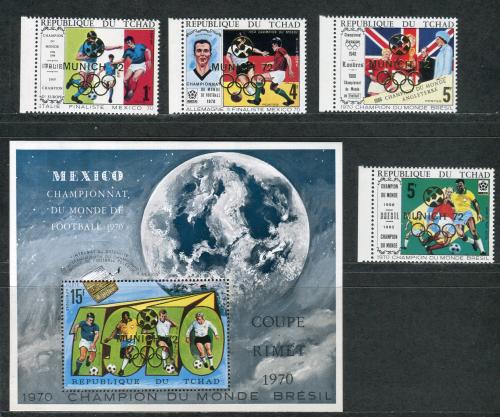 Почтовые марки. Чад 1972 г. Олимпийский футбольный турнир, Мюнхен. Надпечатка. Mi: № 565-567, Блок № 48.