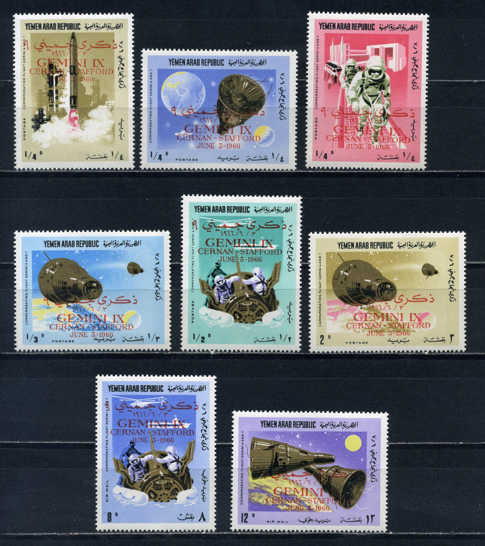 Почтовые марки. Йемен 1966г. Космос. Надпечатка. №543-550.