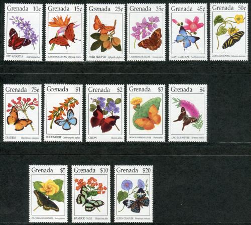 Почтовые марки. Гренада 1994 г. Бабочки и цветы. MiNr. 2834 - 2847. MI:70,00 €.