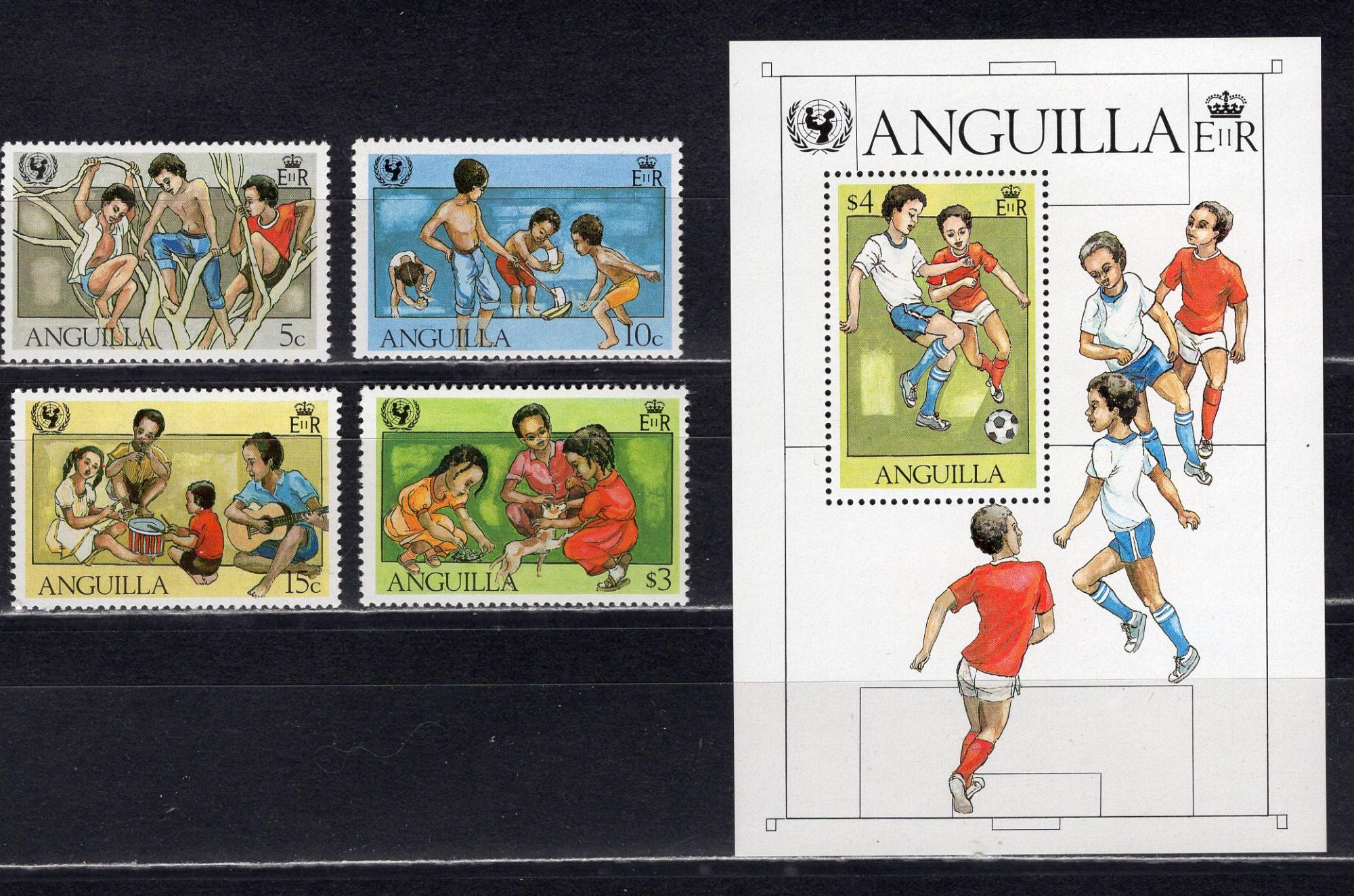 Почтовые марки. Ангилья. 1981г. ЮНИСЕФ. Футбол. №446-449. Блок №39.