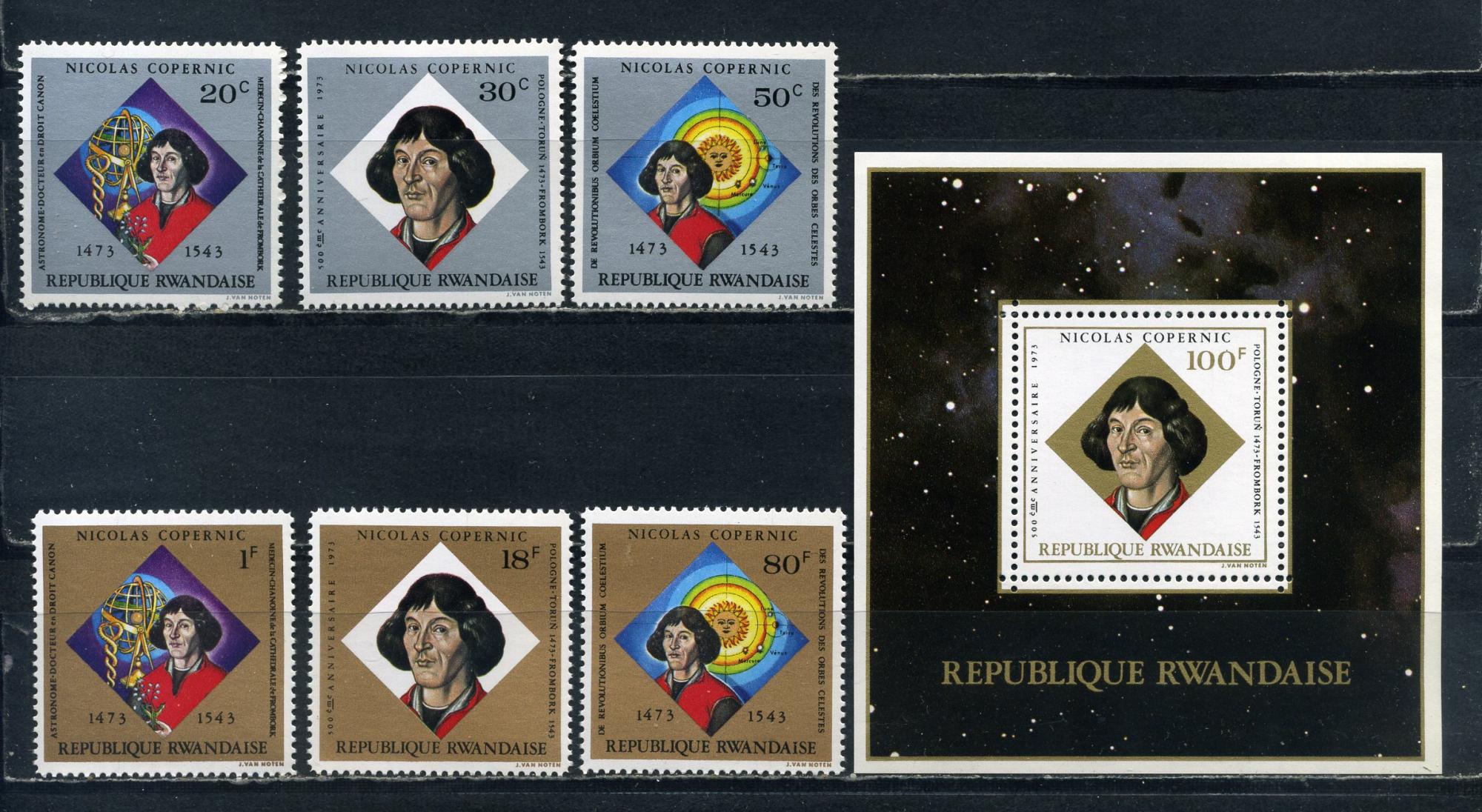 Почтовые марки. Руанда. 1973г. Космос. Коперник. №612-617. Блок №37.