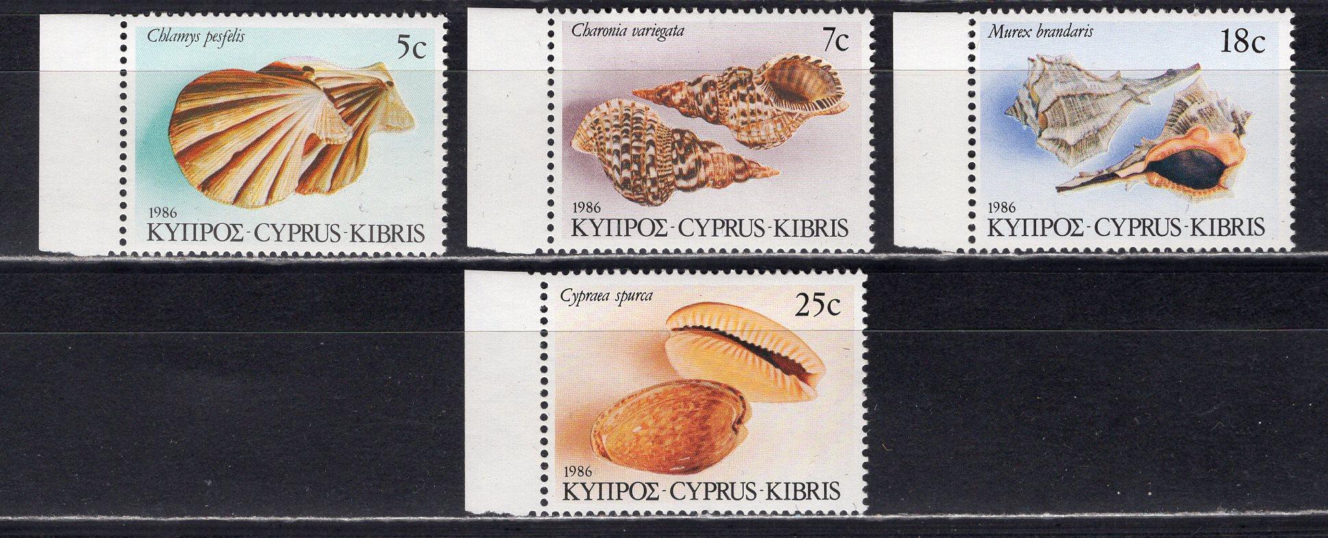Почтовые марки. Кипр. 1986г. Ракушки. №657-660.