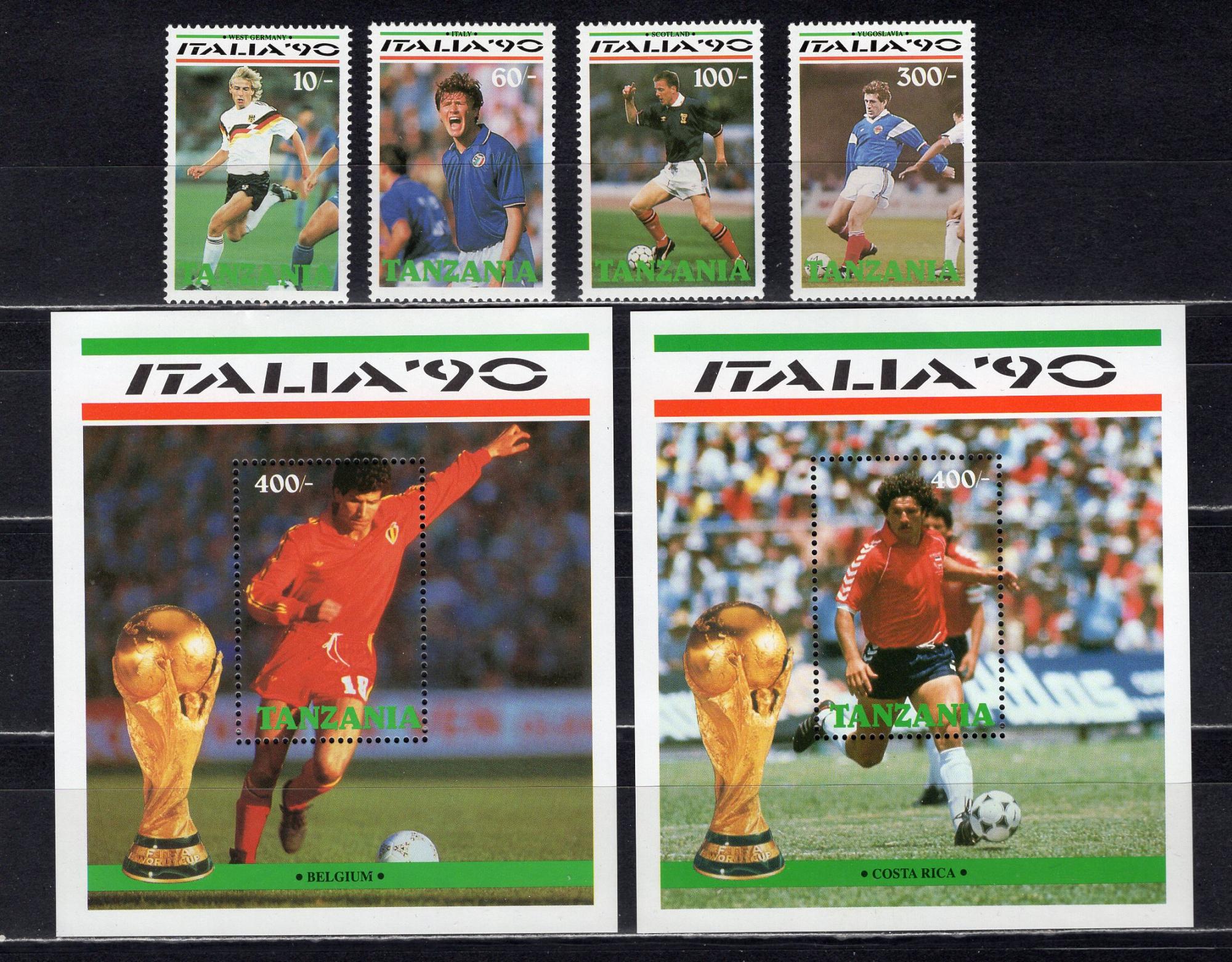Почтовые марки. Танзания. 1990г. Футбол. №688-691. Блок №119-120.