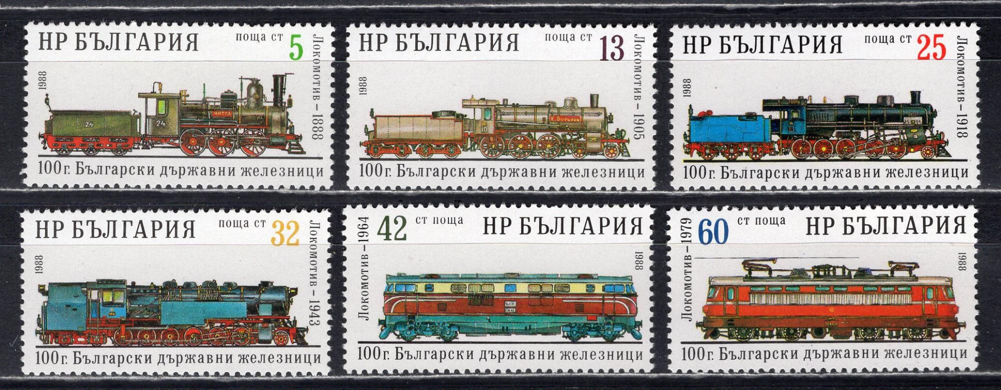 Почтовые марки. Болгария. 1988г. Локомотивы. №3637-3642.