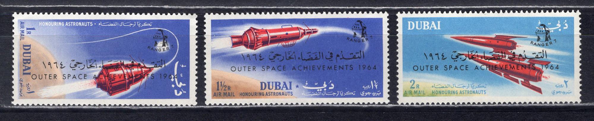 Почтовые марки. Дубай. 1964г. Космос. Надпечатка. №153-155.