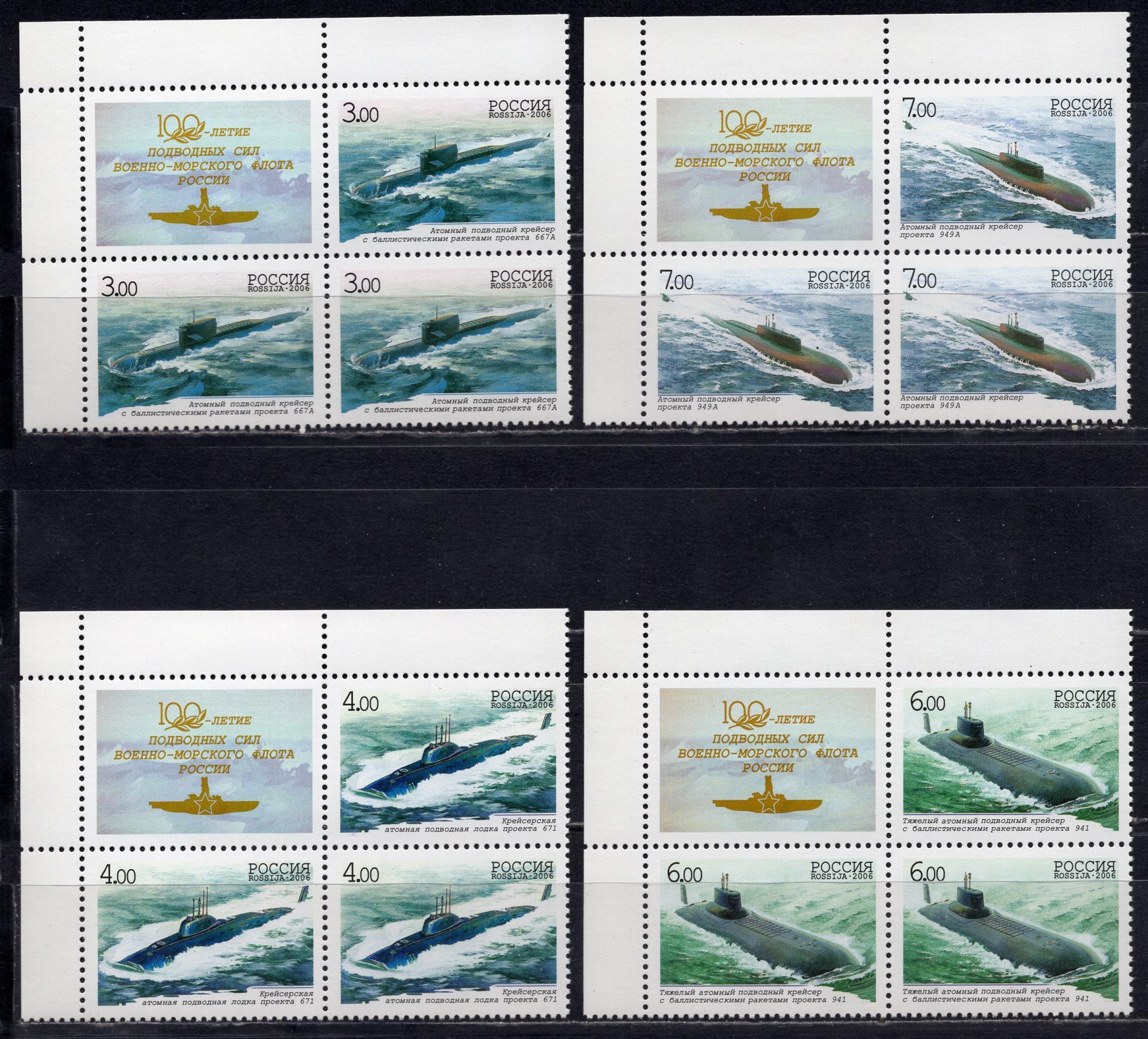 Почтовые марки. Россия. 2006г. Подводные лодки. №1079-1082. КБ с купоном (Кат.: 1600р.).