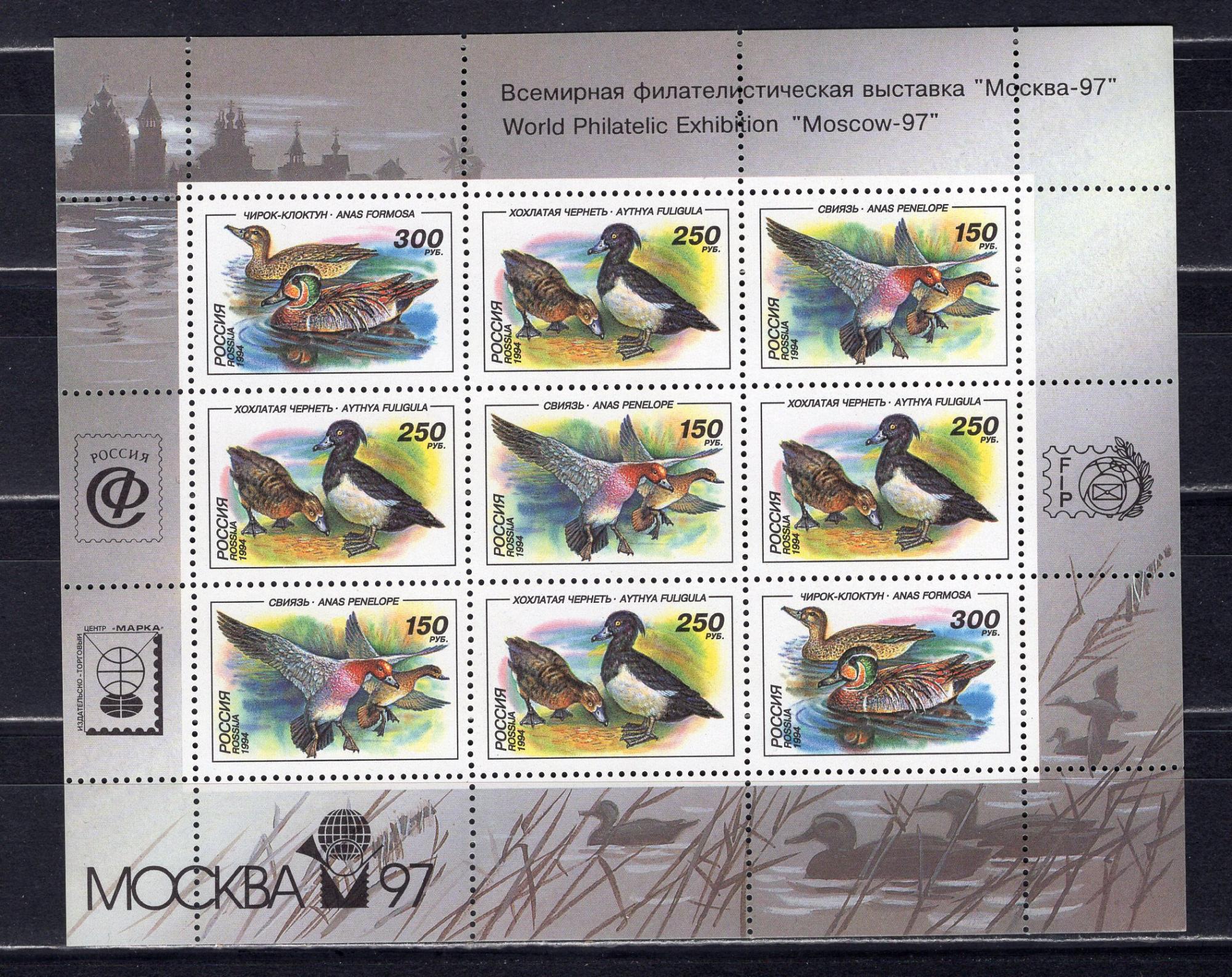 Почтовые марки. Россия. 1994г. Утки. Надпечатка. №170-172. МЛ.