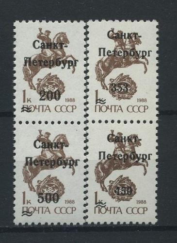 Почтовые марки. С-Петербург. Локальная почта. 1992. Cтандарт. Надпеч. Серия в сцепках (!). № L3-L-6.