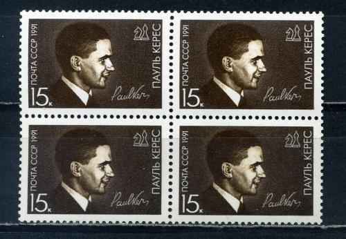 Почтовые марки. СССР. 1991г. Шахматист Пауль Керес. №6284. КБ (Кат.: 160р.)