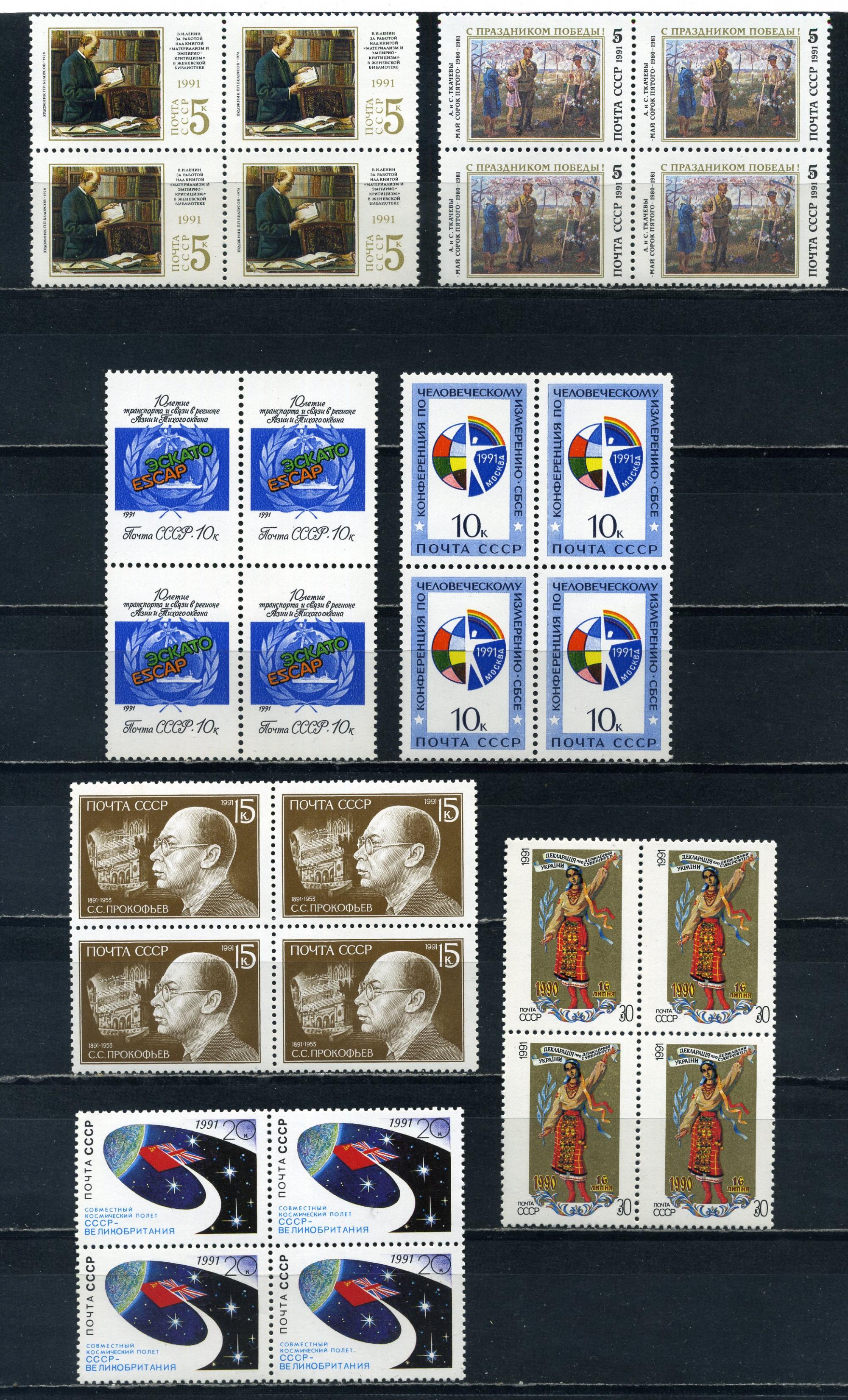 Почтовые марки. СССР. 1991г. Ленин. День Победы. Сборный лот. №6305.6312-6314.6333.6338. КБ (Кат.: 800р.)