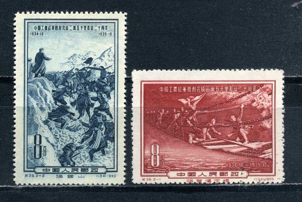 Почтовые марки. КНР. 1955г. Дальний поход Красной Армии, 20-летие. №286-287 (Mi: 80.00 Евро).