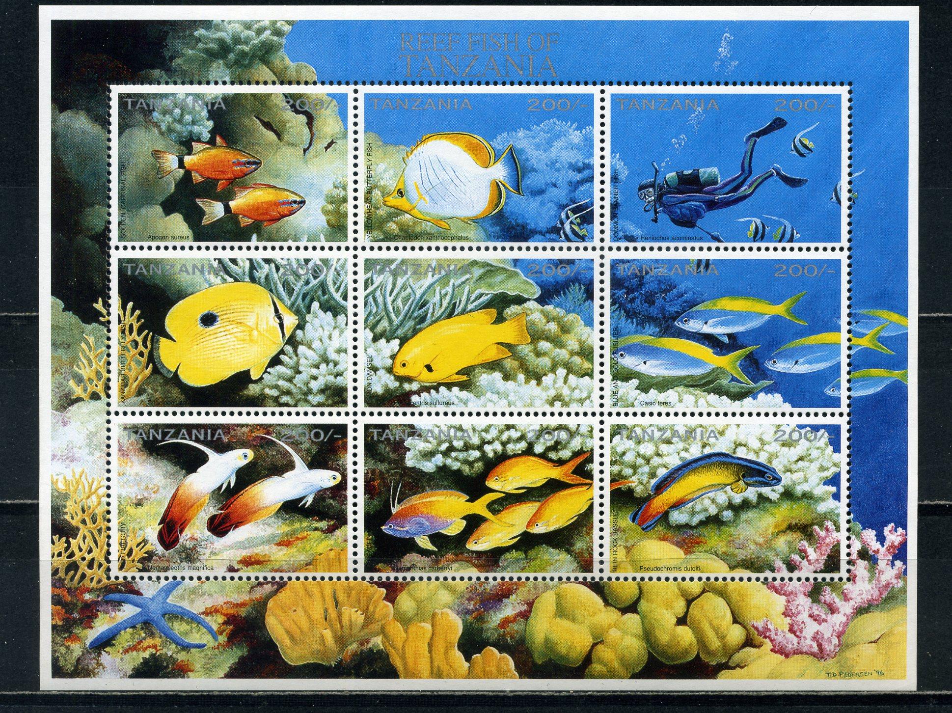 Почтовые марки. Танзания. 1996г. Подводное царство. Рыбы. №2424-2432. МЛ.