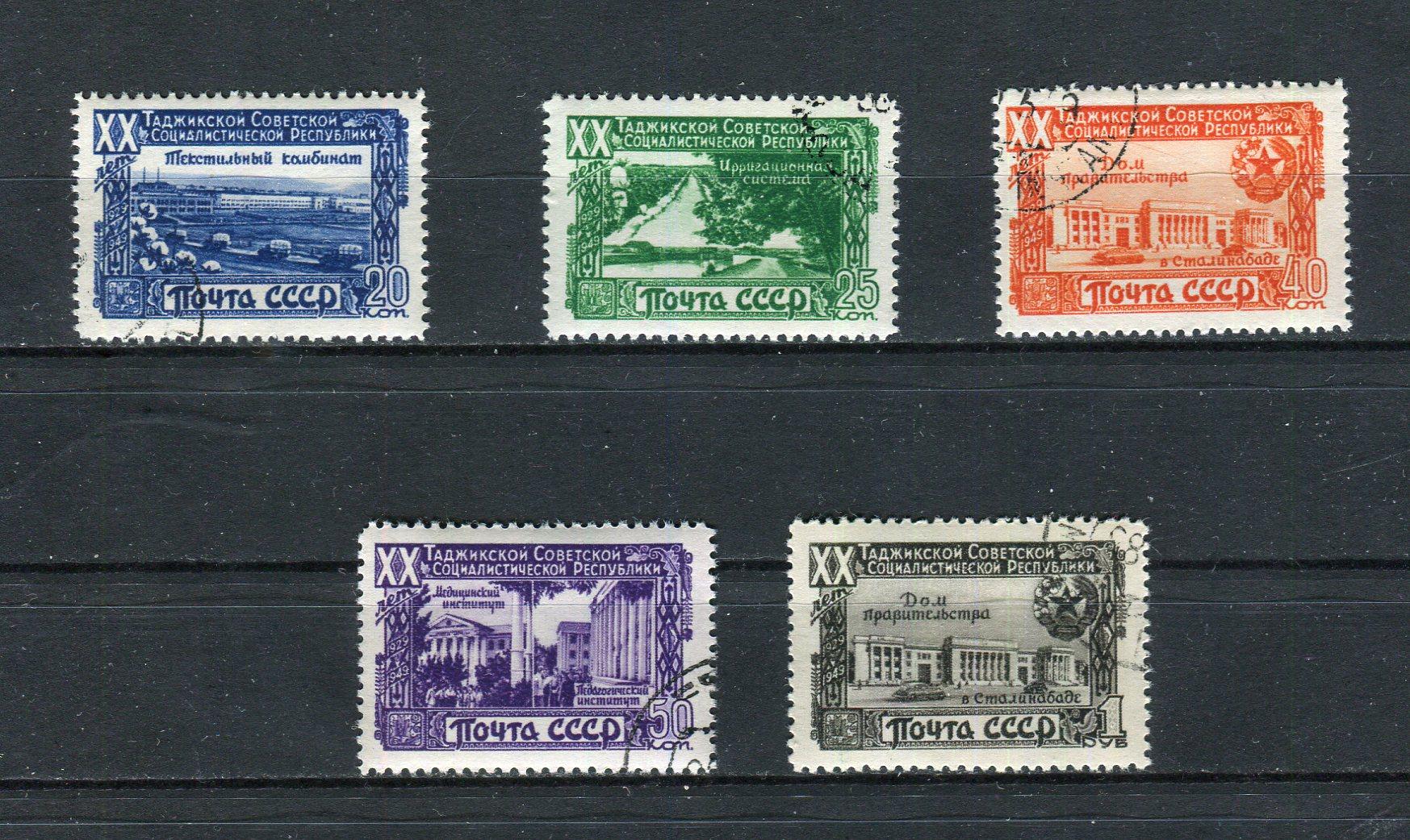 Почтовые марки. СССР. 1949г. Таджикская ССР. № 1474-1478. Люкс. Свой клей.