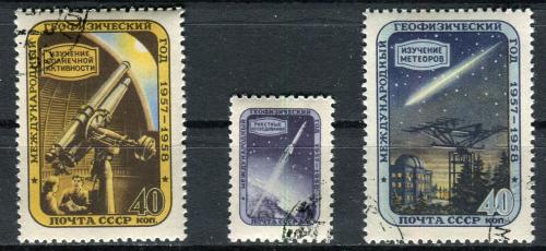 Почтовые марки. СССР 1957. Географический год. № 2017-2019