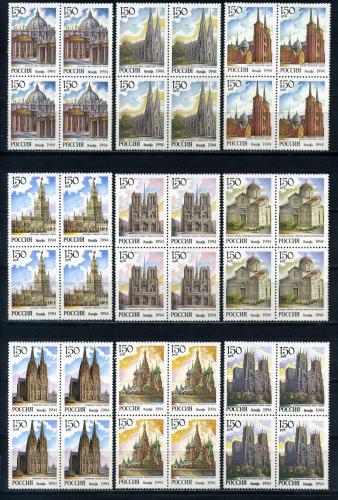 Почтовые марки. РФ. 1994г. Соборы Мира. №149-157. КБ.