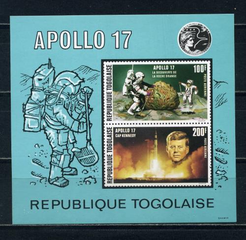 Почтовые марки. Того. 1973г. Космос. Аполло-17. Блок №75в. Беззубц.
