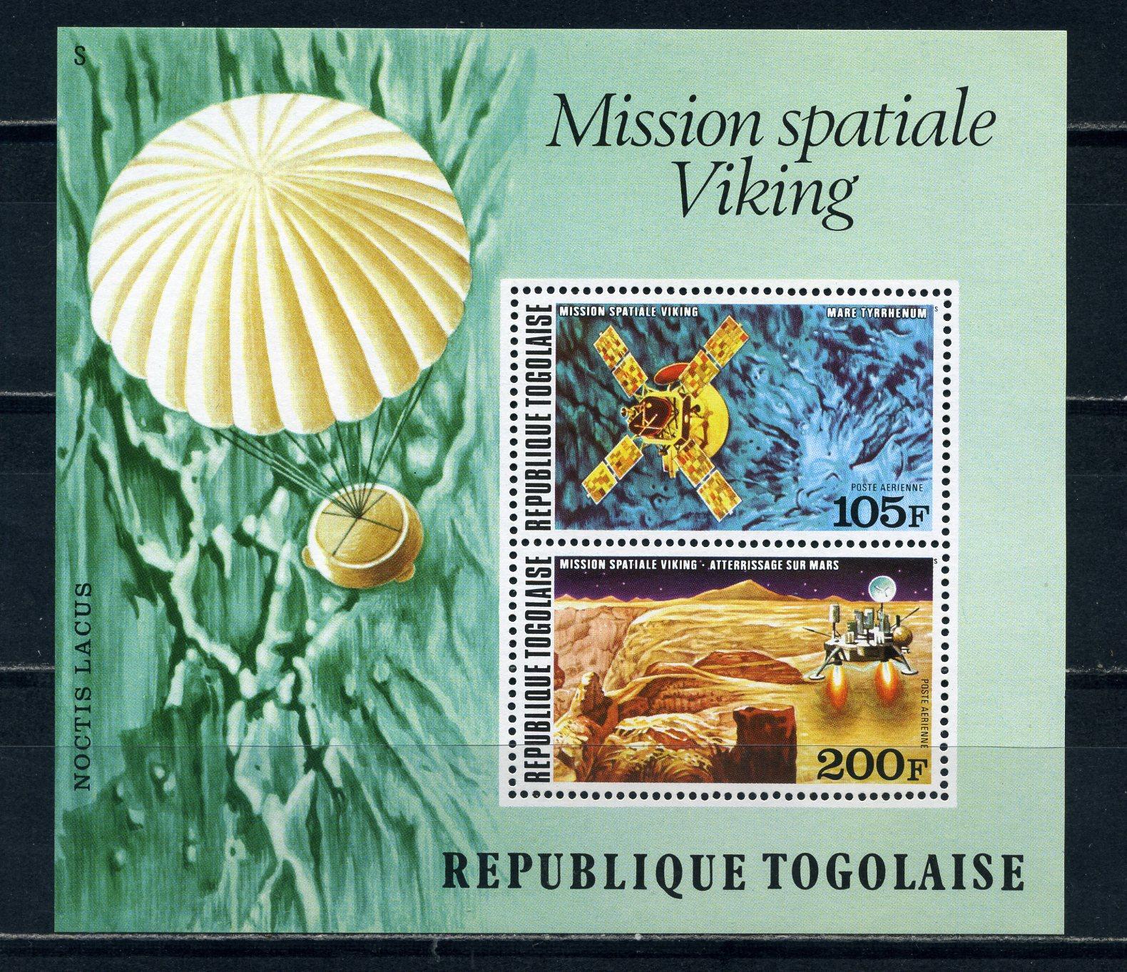 Почтовые марки. Того. 1976г. Космос. Викинг на Марсе. Блок №105.