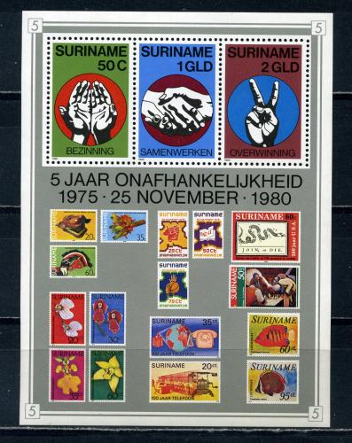 Почтовые марки. Суринам. 1980г. Филвыставка. Марки на марках. Блок №27.