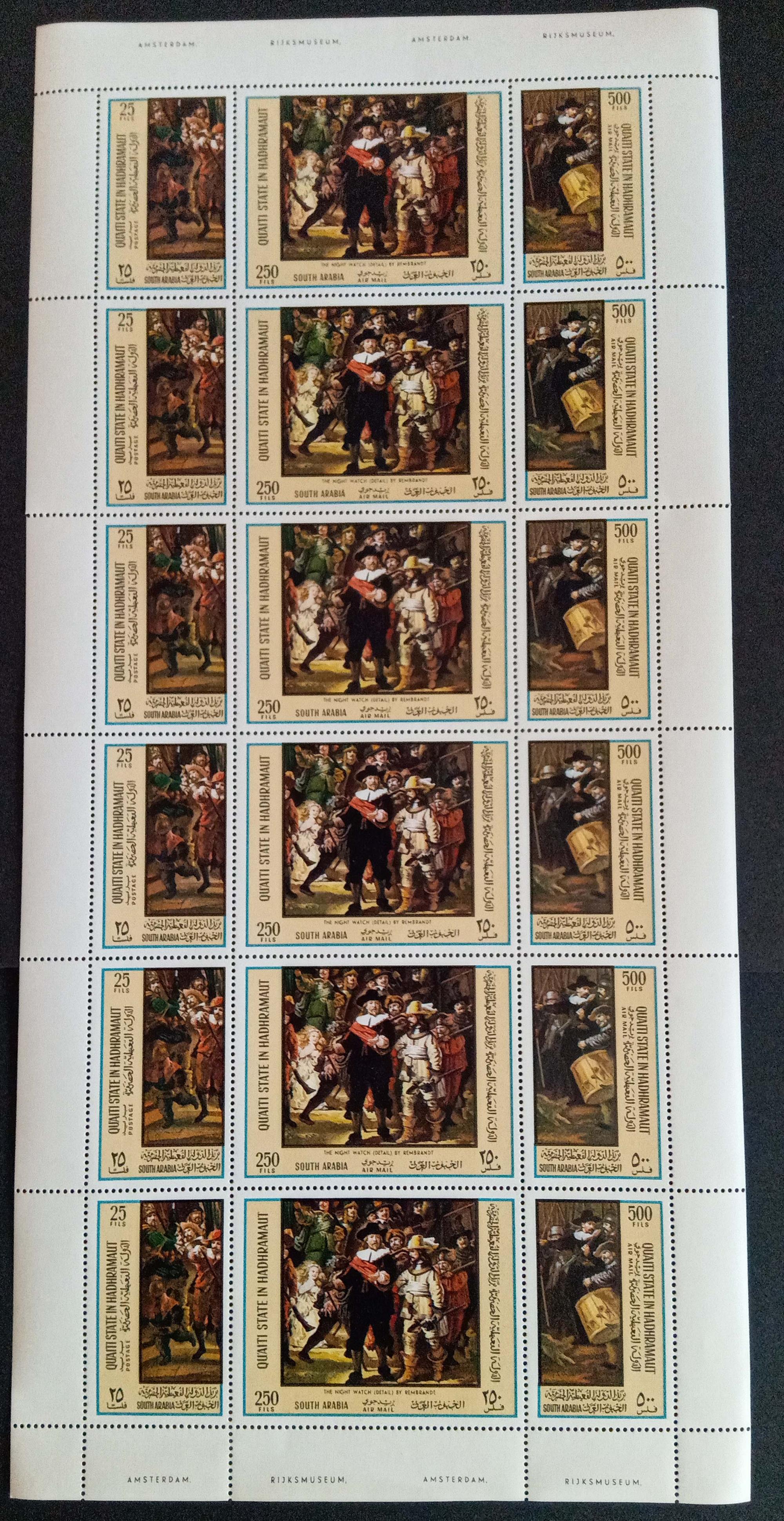 Почтовые марки. Аден. Qu'aiti St. 1967. Рембрандт. № 165-167. Лист (слож.).