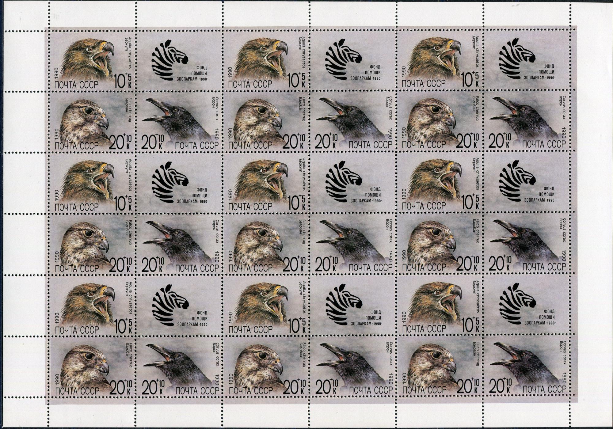 Почтовые марки. СССР. 1990. Птицы. ЛИСТ. № 6199-6201