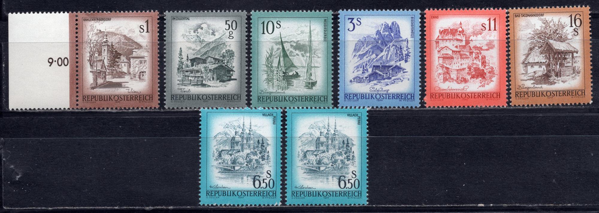 Почтовые марки. Австрия, 1973-1977 г. Стандарт. Виды. Страны. №1433, 1442 etc.