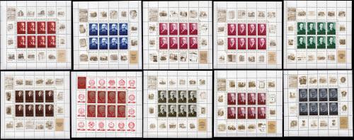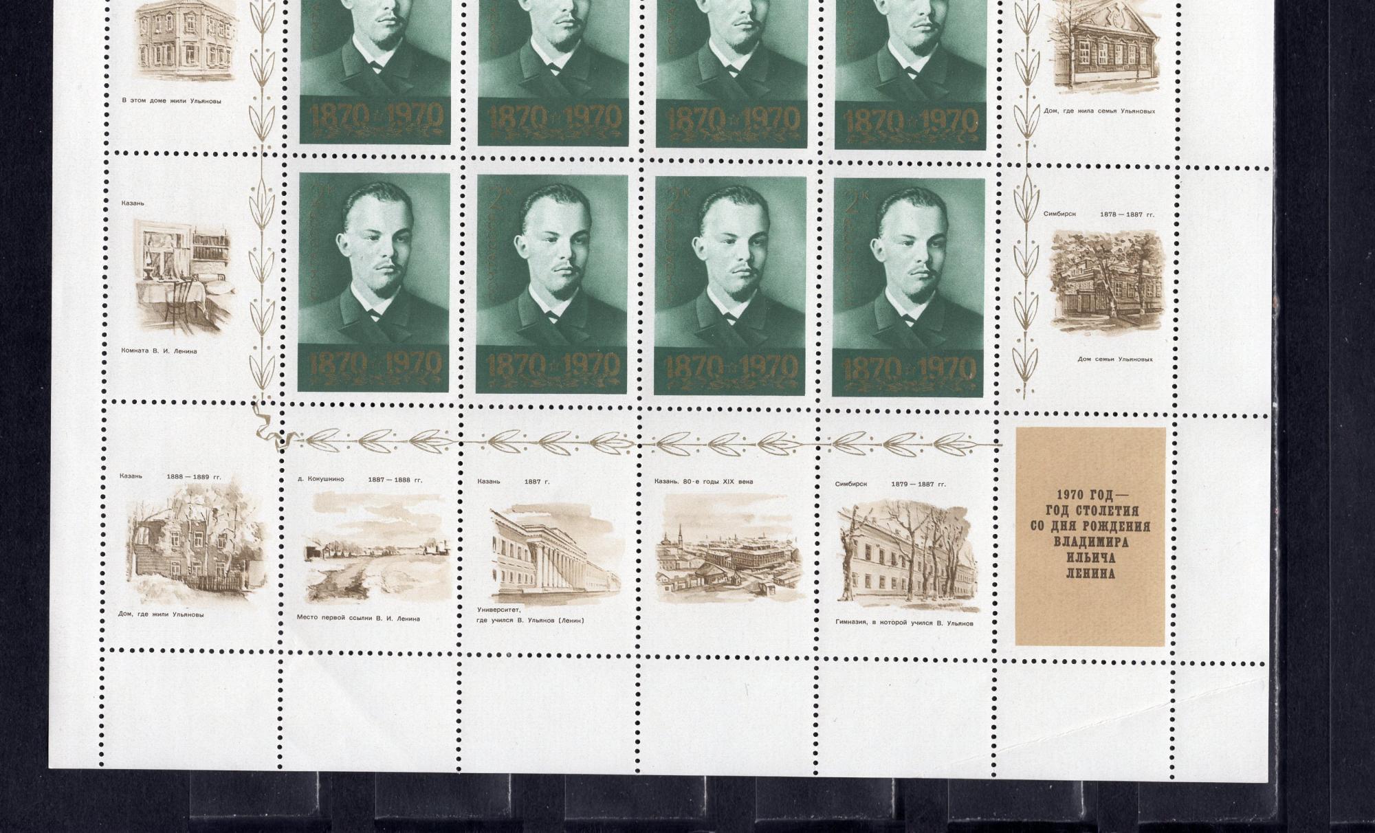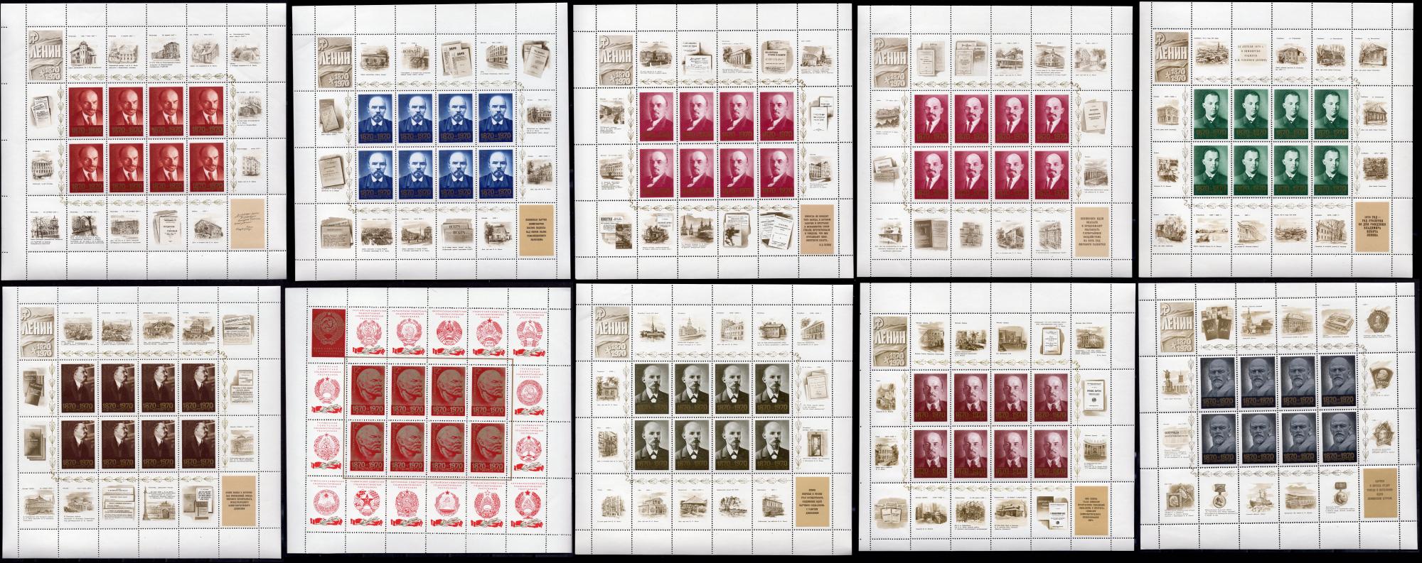 Почтовые марки. СССР. 1970 г. В.И. Ленин. №3879-3888. ЛИСТЫ. Комплект. (См. сост. одного листа - прав. нижний угол на доп. скане)