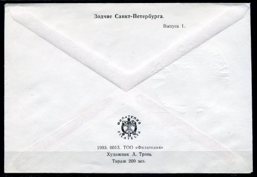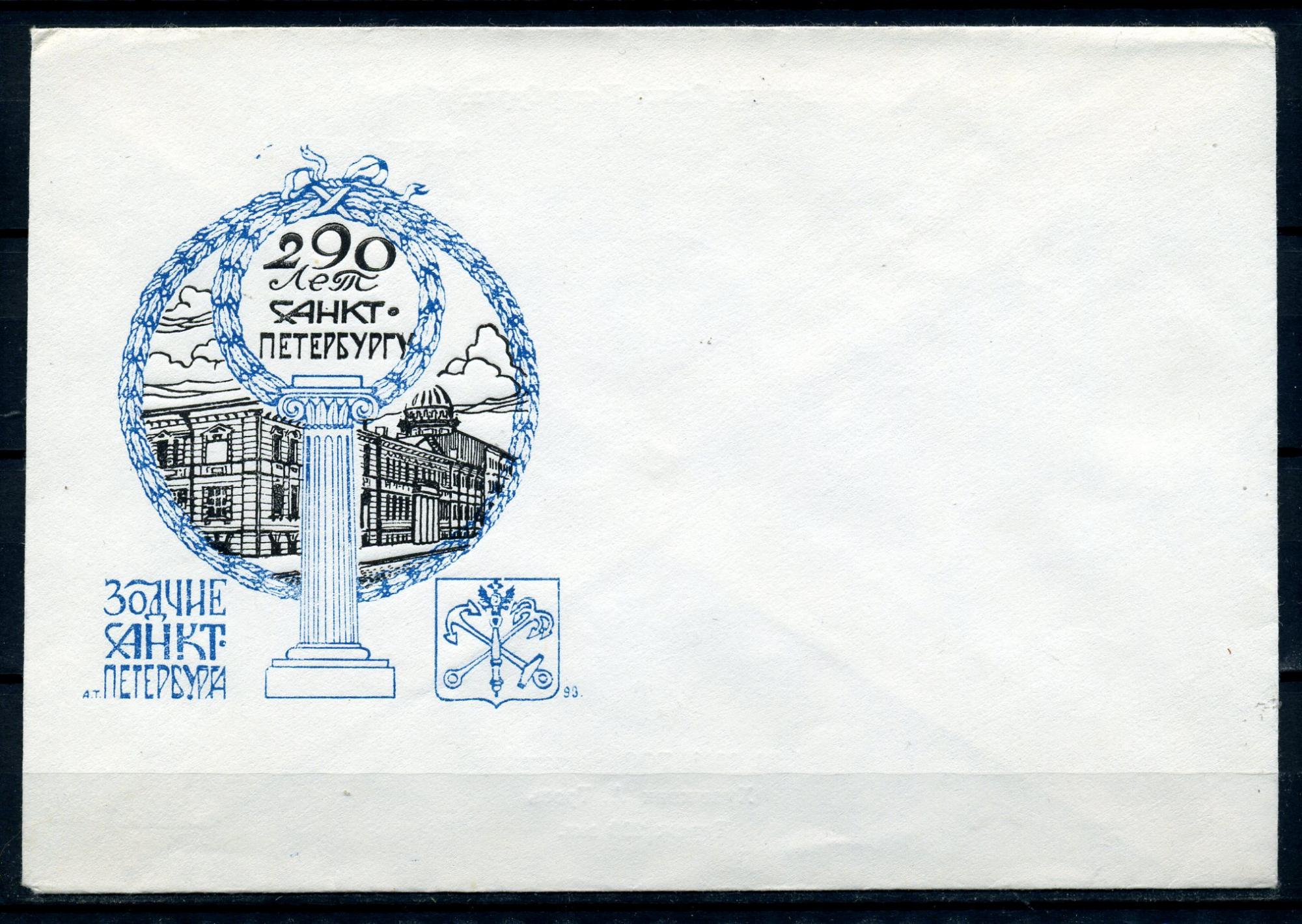Немаркированный конверт. Россия 1993 г. 290 лет Санкт-Петербургу. КО. Тир. 200 экз.