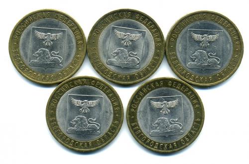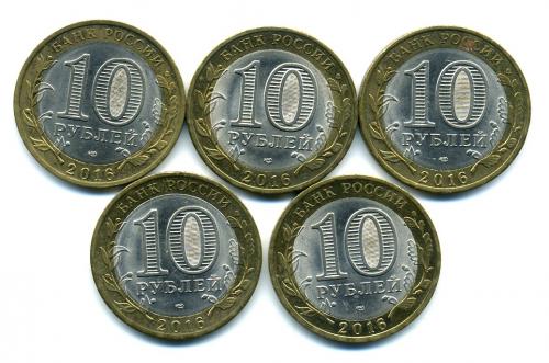 Монеты России. 10 рублей 2016 г. 5 шт.