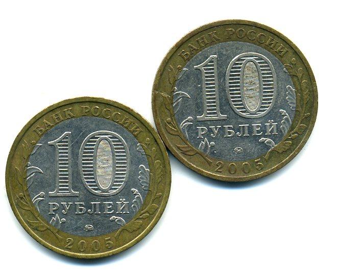 Монеты России. 10 рублей 2005 г. 2 шт.