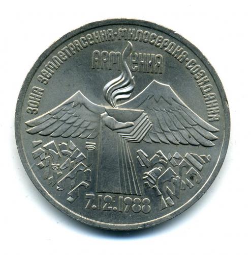 Монеты СССР. 3 рубля 1989 г. Землетрясение в Армении.
