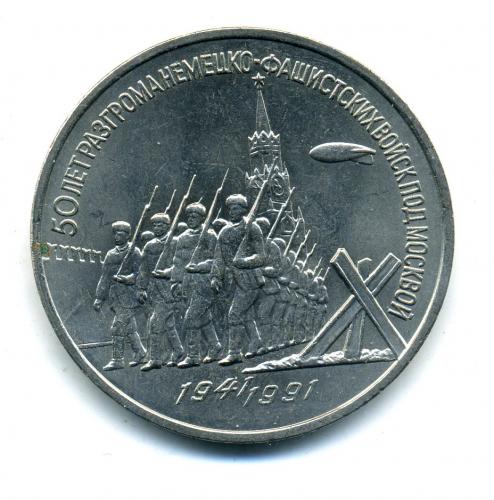 Монеты СССР. 3 рубля 1991 г. 50 лет разгрома немцев под Москвой.
