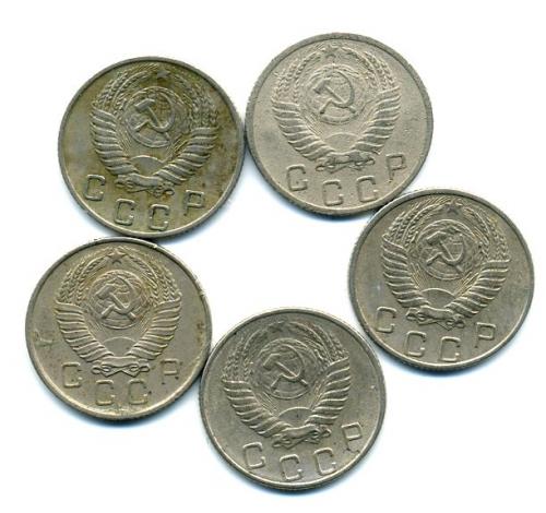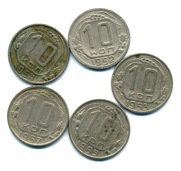 Монеты СССР. 10 копеек 1952-1957 г. 5 шт.