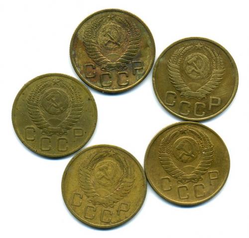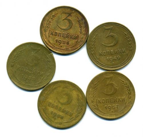 Монеты СССР. 3 копейки 1949-1956 г. 5 шт.