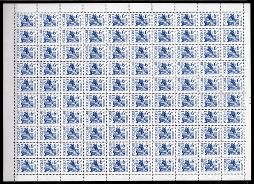 Почтовые марки. Россия. 1993г. Стандарт. Простая бумага. №49(95). Лист. (Кат. С-К: 1500р.)