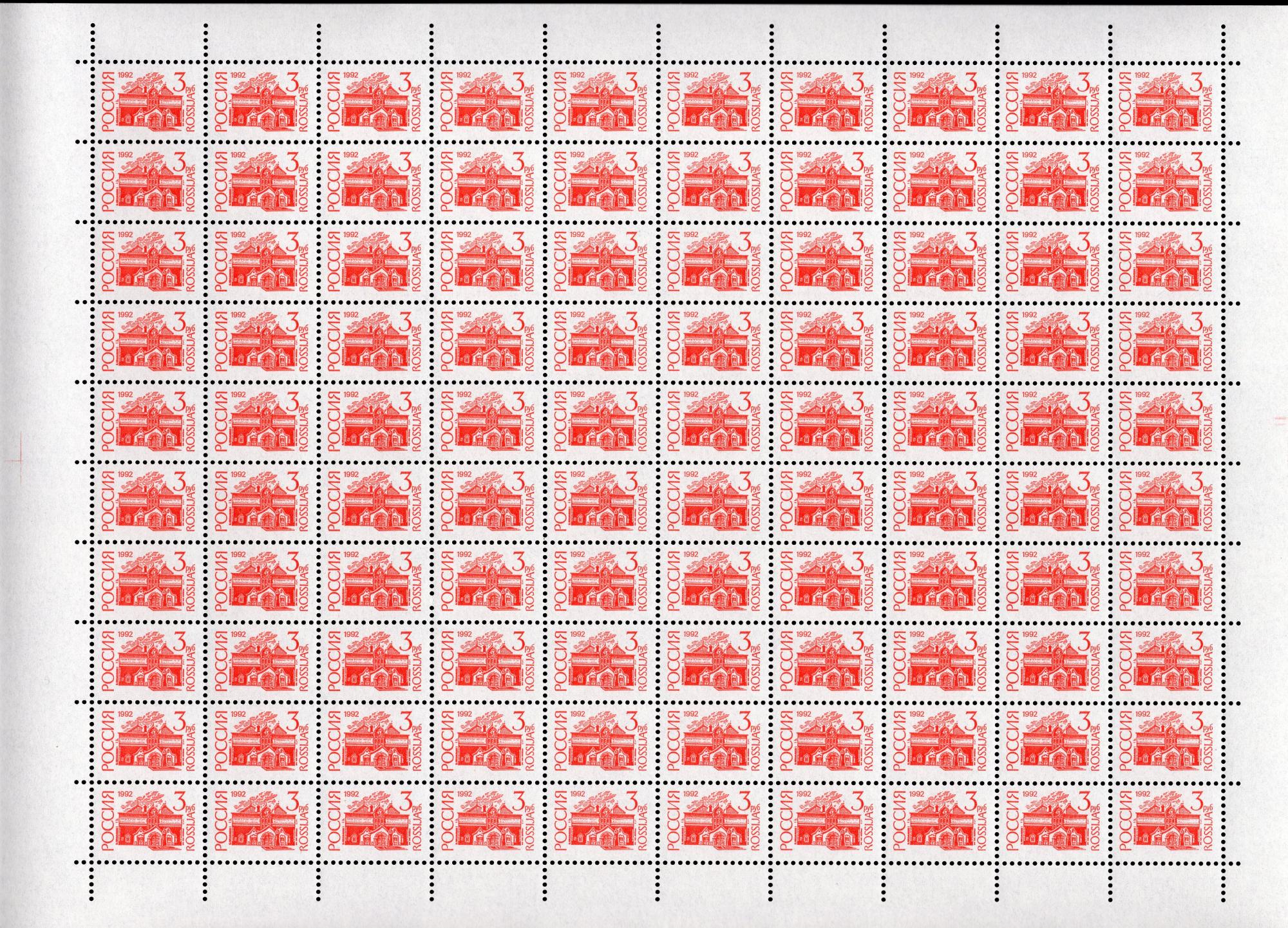 Почтовые марки. Россия. 1992г. Стандарт. Простая бумага. №33(49-I) Лист. (Кат. С-К: 3000р.)