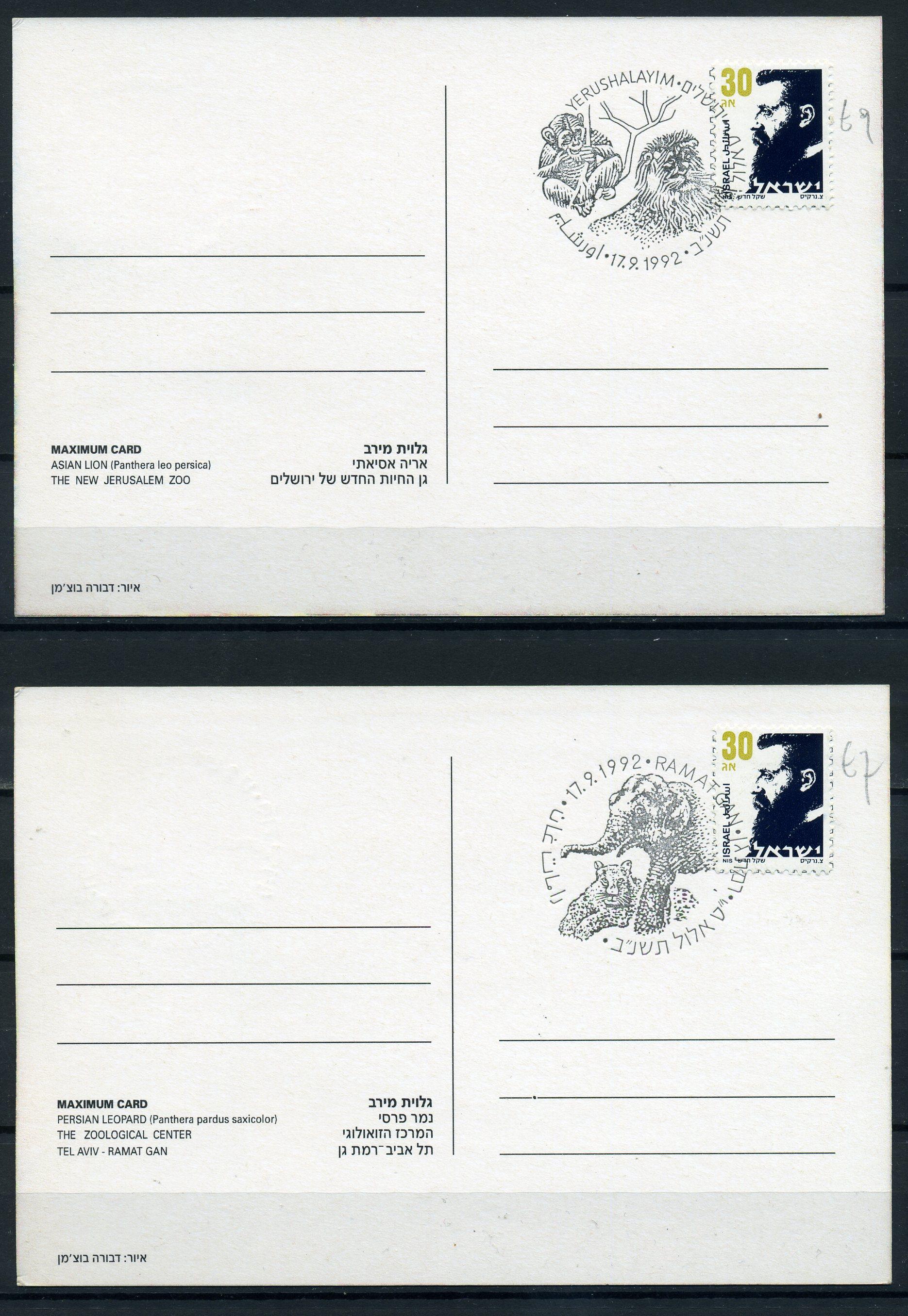 Картмаксимум. Израиль 1992 г. Животные зоопарка.